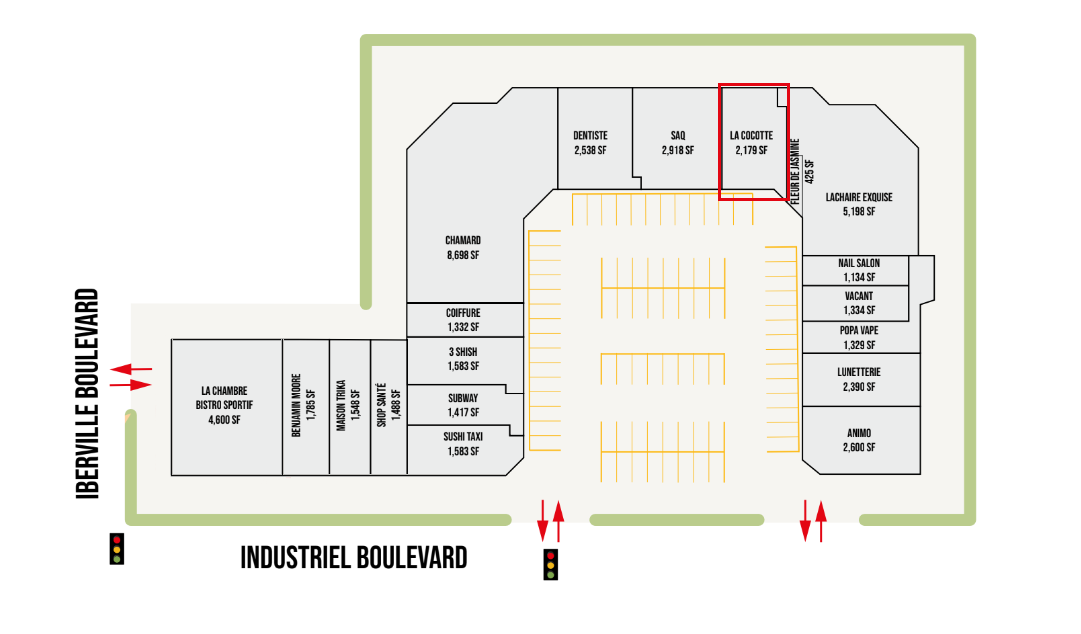 Centre commercial fraîchement rénové composé de locataires AAA situé sur le boulevard Industriel au cœur de Repentigny, Québec, juste à la sortie de l'autoroute 40.